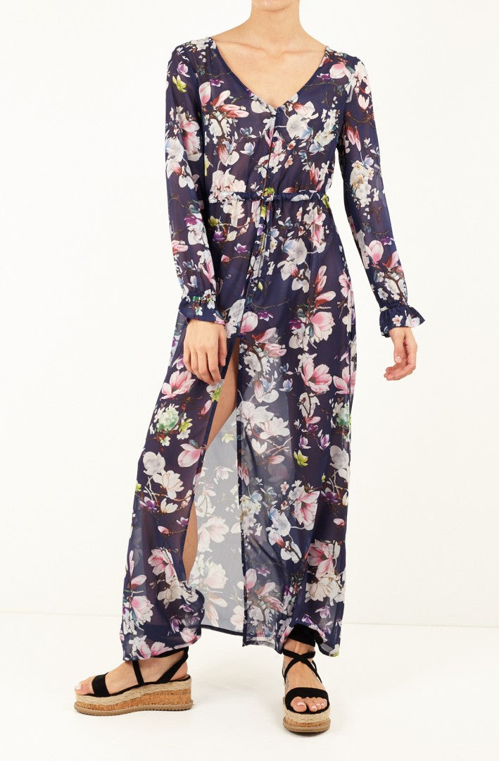 Saskia Floral Print Maxi Beach Cover Up Dress