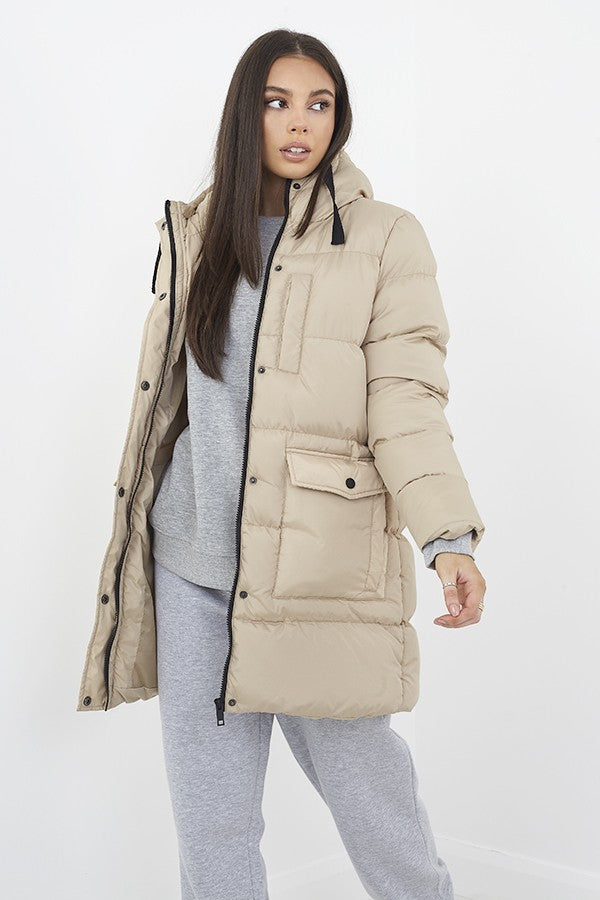 Ladies Stone Oversized Longline Padded Hooded Coat