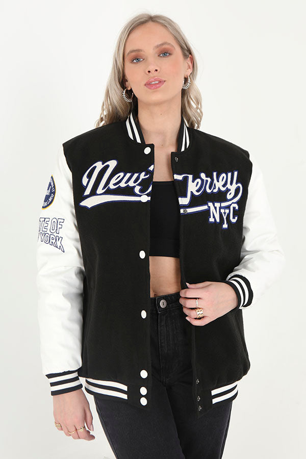 Ladies Black And White Oversized Varsity Style Jacket