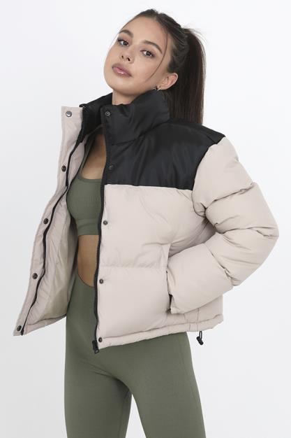 Ladies Stone Colour Block Short Padded Puffer Zip Jacket
