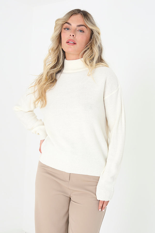 Ivory Boxy Fit Ribbed Detail Jumper