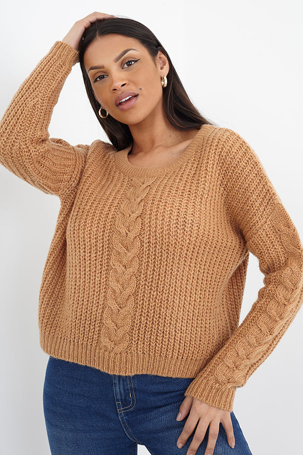 Ladies Cable Knit Design Fisherman Rib Jumper