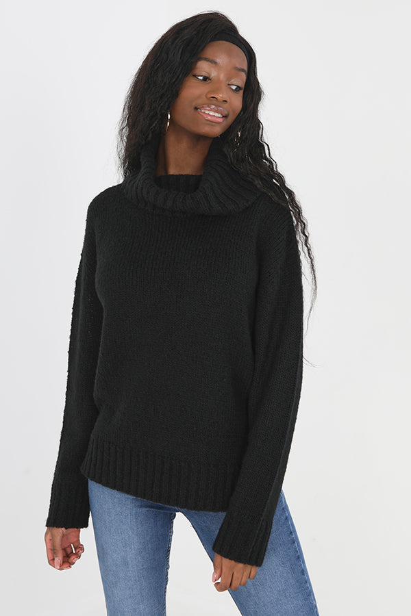 Black Ribbed Roll Neck Mohair Knitted Jumper