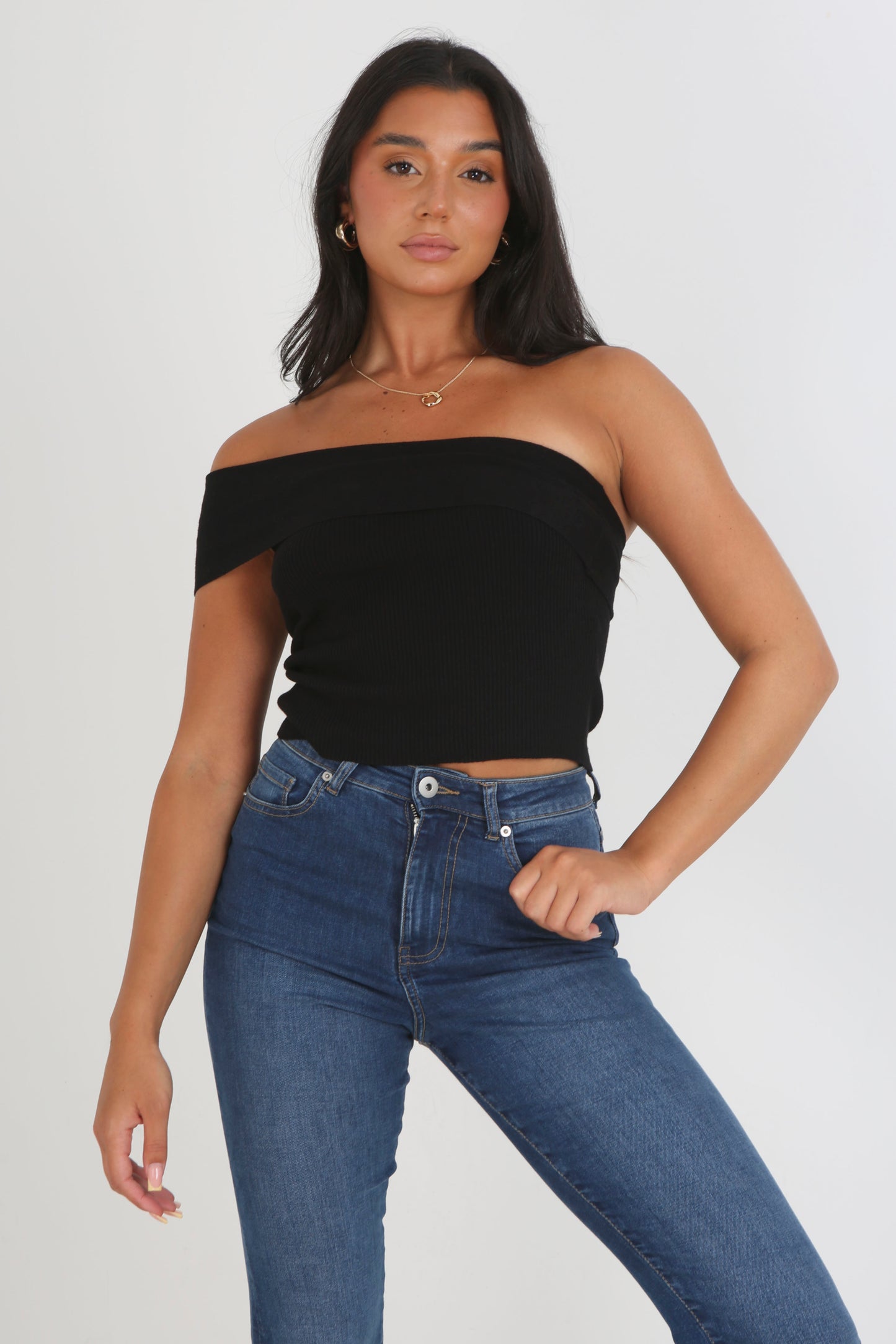 Ladies Knitted Sleeveless Off The Shoulder Top